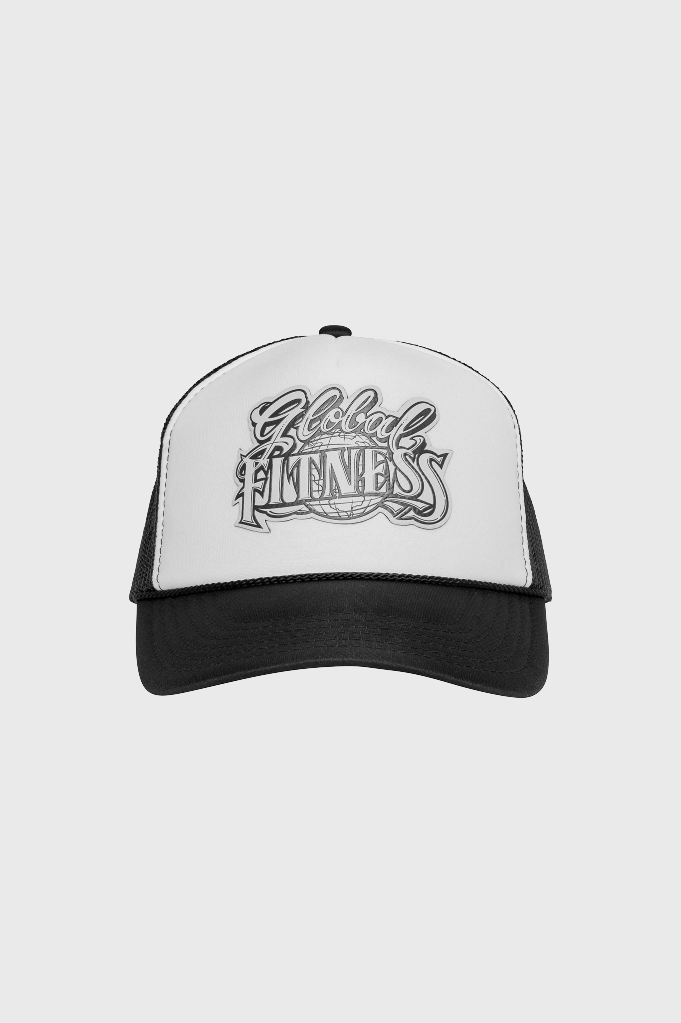 Black & White Global Fitness Mr. Cartoon Trucker Hat