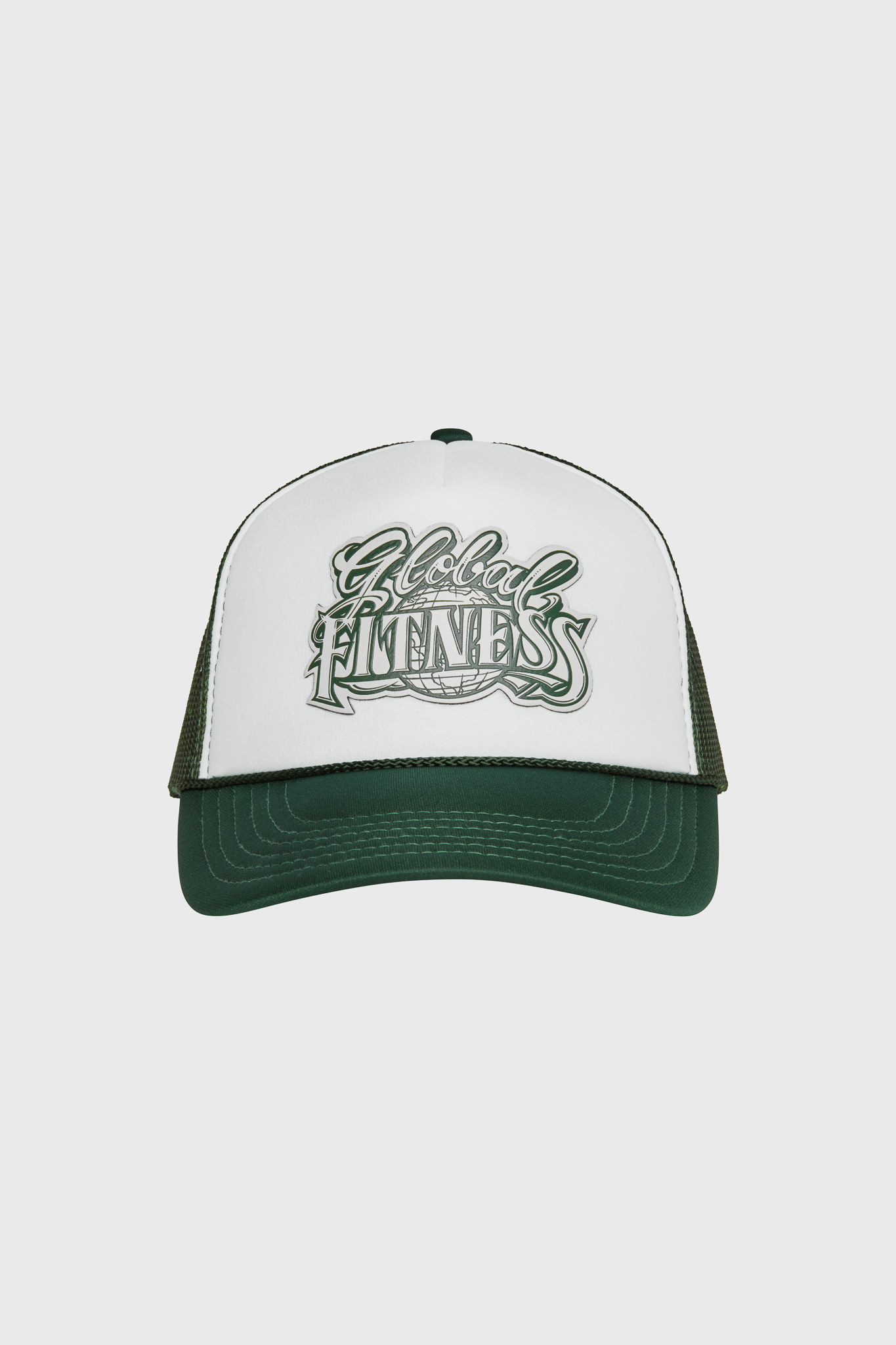Green & White Global Fitness Mr. Cartoon Trucker Hat